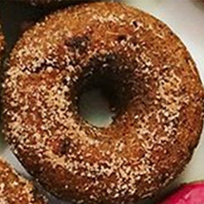 super-moist Pumpkin Cake Donut filled w/ Dates & Walnuts tossed in Cardamom, Ceylon Cinnamon, Black Pepper & Raw Sugar